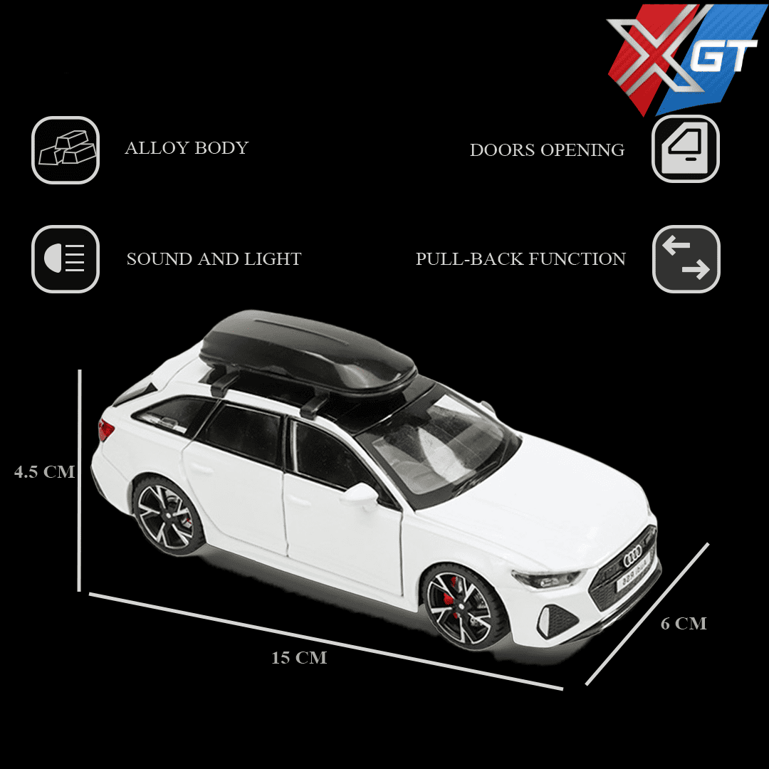 1:32 Audi RS6 Die-Cast Model Experience German engineering excellence in miniature form Built with precision and realism, this premium collectible features detailed interiors, functioning lights, authentic engine sounds, and a smooth pull-back motion. Ideal for both collectors and kids, it captures the sporty luxury of