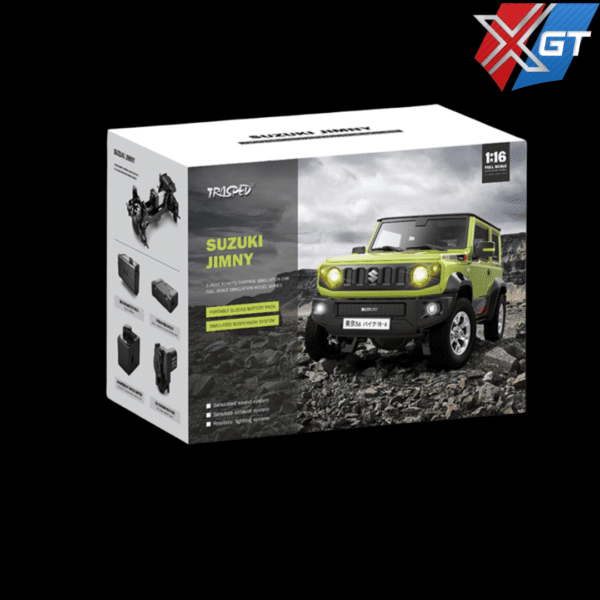 This 1:16 scale Suzuki Jimny RC rock crawler is designed for exciting off-road adventures and immersive play. Featuring a reliable 4WD drivetrain, realistic LED lights, and detailed scale styling, it offers smooth control and stable climbing performance on rugged terrain. With optional smoke effects and engine sound features, it provides a fun and engaging driving experience for beginners, hobbyists, and RC enthusiasts of all ages.
