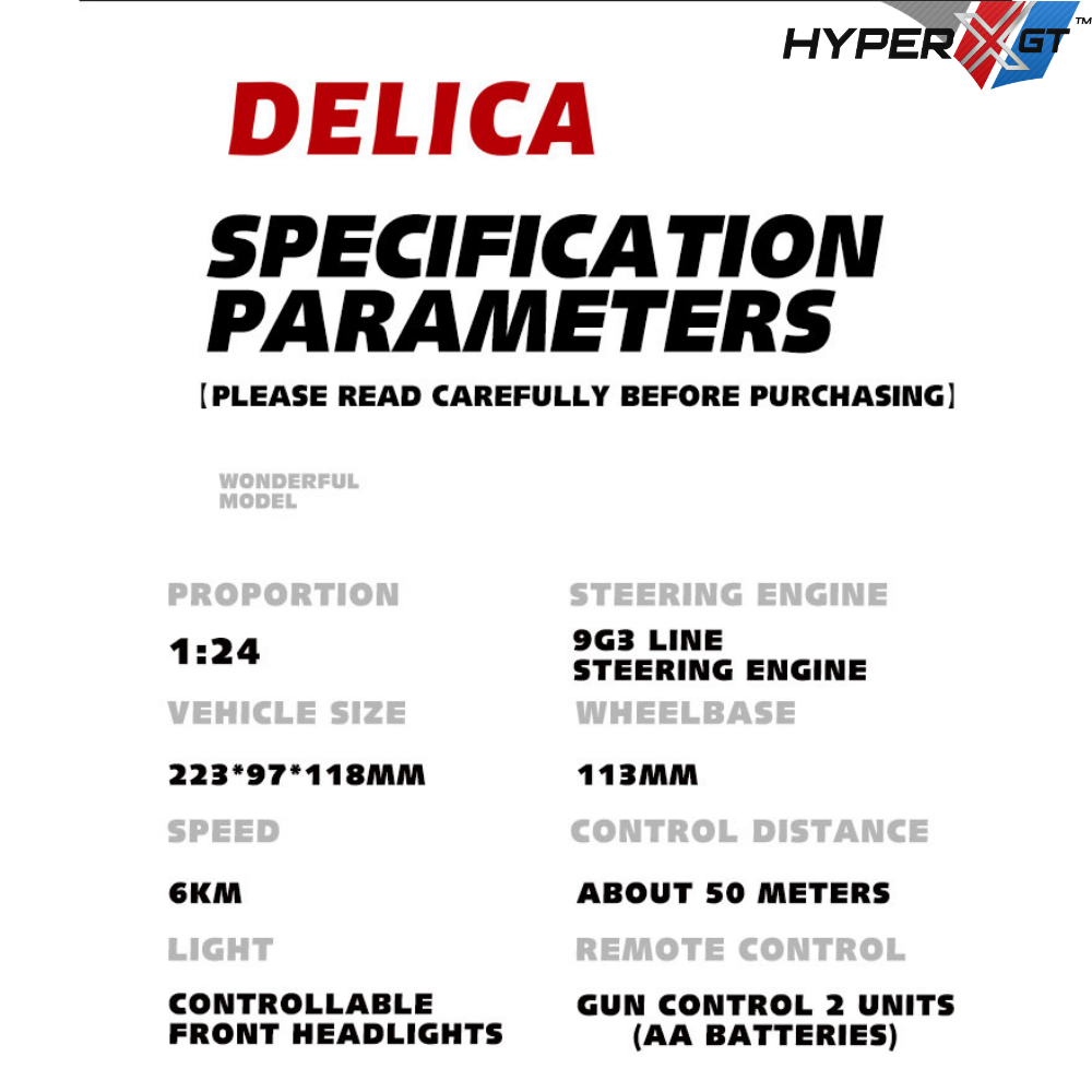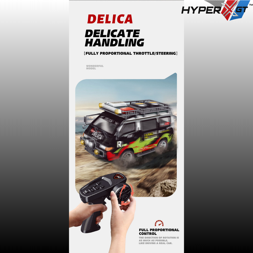 Enjoy fun-filled driving adventures with this 1:24 scale Delica-licensed RC drift car. Designed especially for beginners, it features smooth proportional control, durable construction, and realistic LED lighting effects for an engaging play experience. Its compact RWD design offers precise drifting and stable handling, making it perfect for both indoor and outdoor use. A great choice for families, hobbyists, and casual racers who want reliable performance in a stylish mini package.