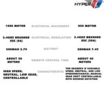 | Motor Capacity | 3.7V 14500 500mAh / 7.4V 380mAh |