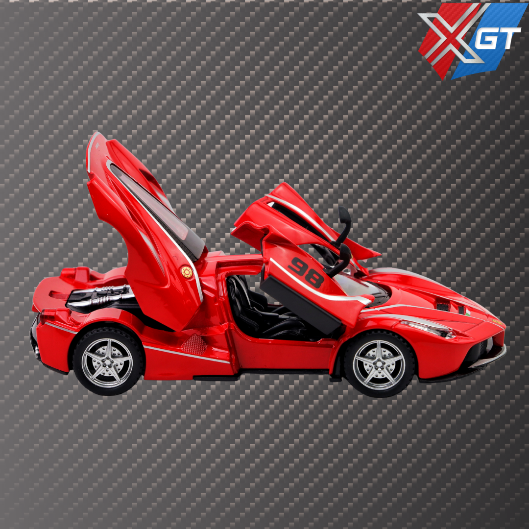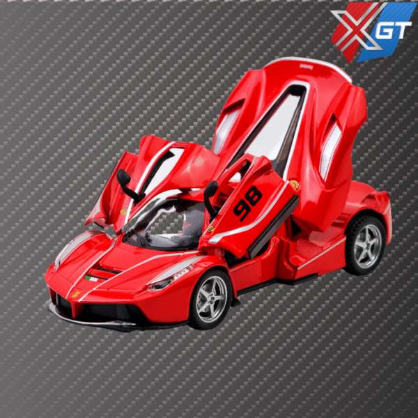 The model is a premium showcasing Ferrari’s racing elegance. Featuring pull-back action, four openable doors, realistic lights and sounds, and a durable metal body, it’s perfect for kids and collectors alike.