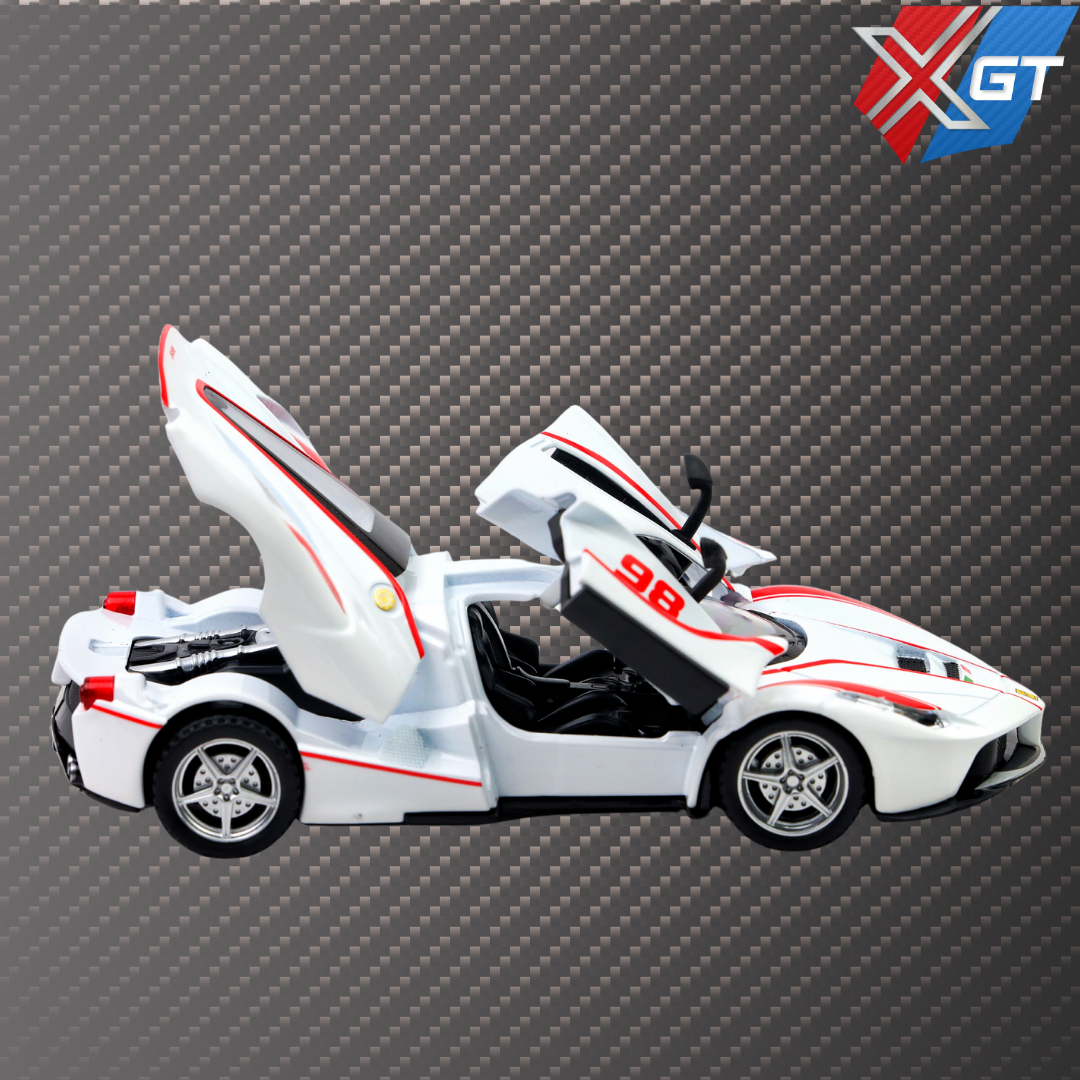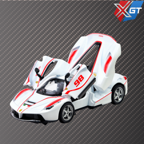 The model is a premium showcasing Ferrari’s racing elegance. Featuring pull-back action, four openable doors, realistic lights and sounds, and a durable metal body, it’s perfect for kids and collectors alike.