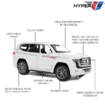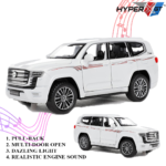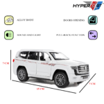 Experience the elegance and power Crafted with precision, this SUV features a durable alloy body, detailed interior, opening doors, and realistic lights and sound. Its pull-back action and fine craftsmanship make it an ideal collectible for enthusiasts and a fun, interactive toy for kids.