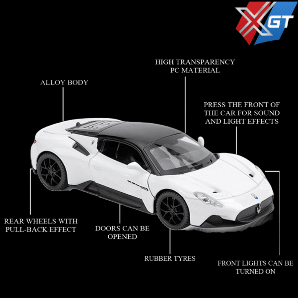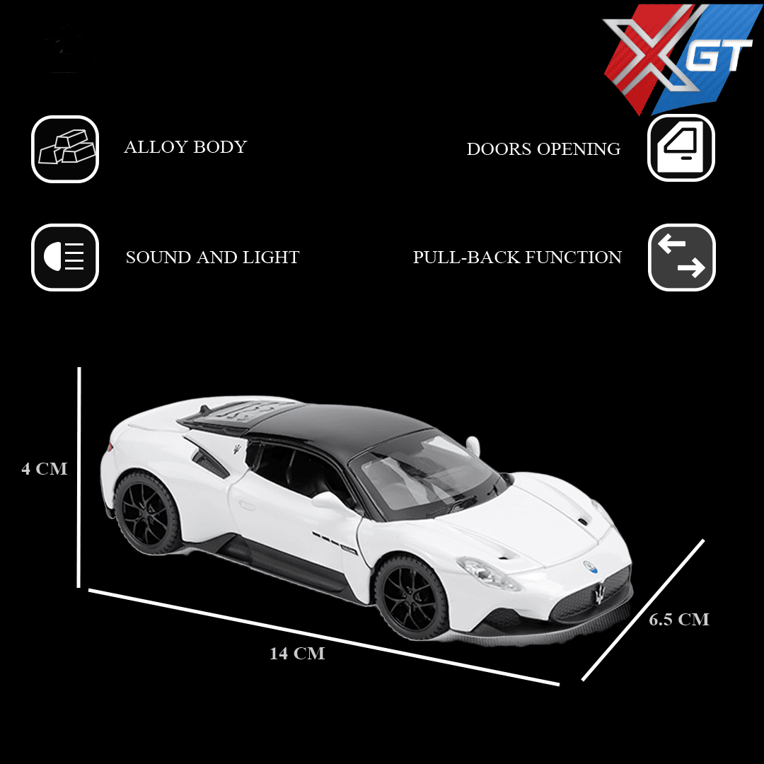 Experience the elegance and performance . This model captures the aerodynamic precision and luxury design of Maserati’s iconic supercar. Built from premium alloy with light and sound functions, it’s perfect for collectors, display enthusiasts, and kids alike.