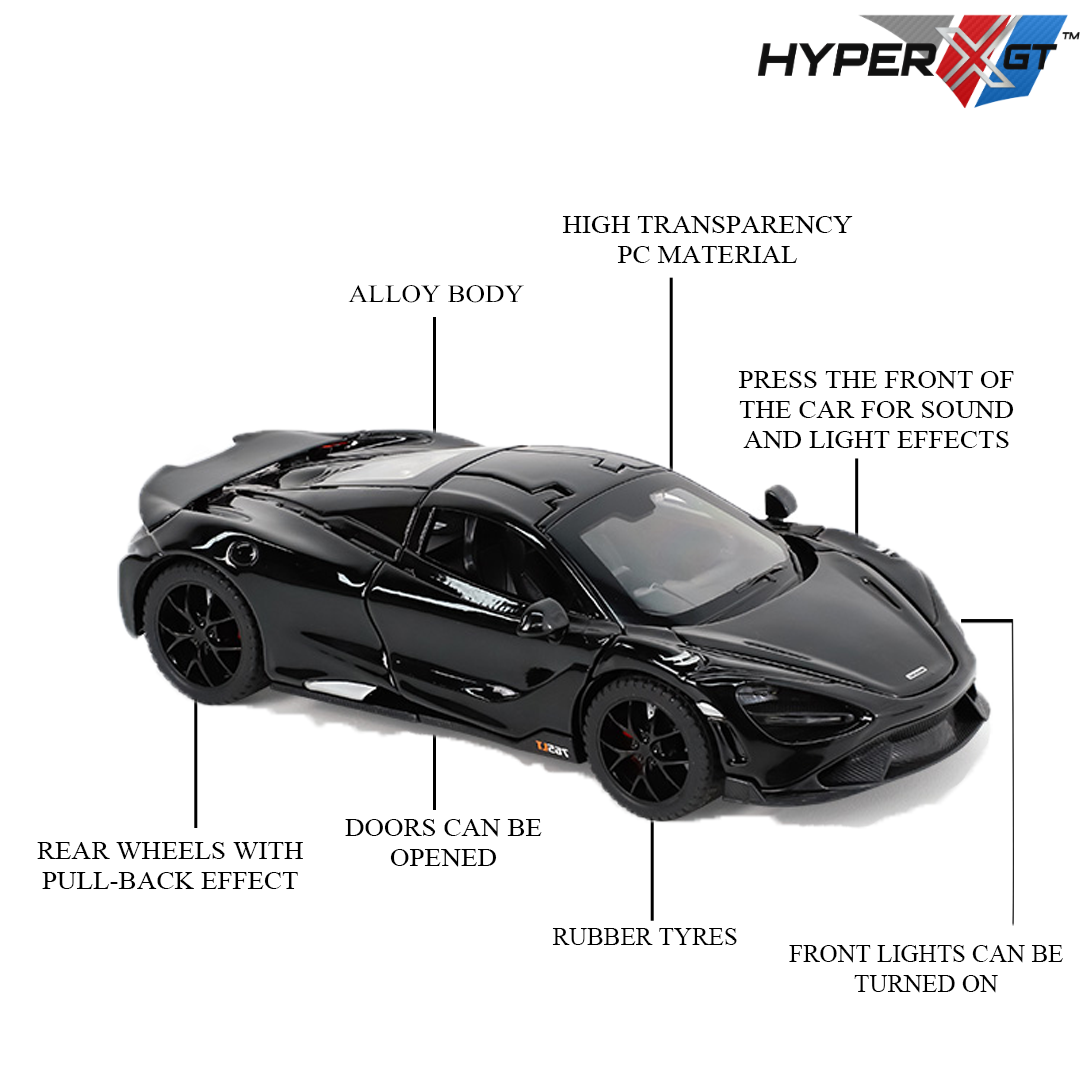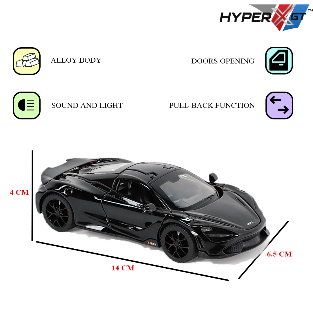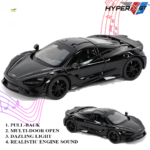 The model delivers the thrill of a supercar in miniature form. Crafted with precision from high-quality alloy and plastic materials, this model replicates the aerodynamic beauty and performance essence of the real McLaren. It features openable doors, a smooth pull-back mechanism, and a sleek black finish for an authentic, collectible look. Designed for both kids and collectors, it offers a premium play and display experience with lasting durability and realistic styling.