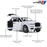 The Model embodies luxury, elegance, and fine craftsmanship in every detail. Designed with an ally metal body and precision plastic components, this collectible model captures the grandeur of Rolls Royce’s timeless design. With working headlights, realistic engine sounds, and functional doors, it delivers an immersive miniature experience for collectors and car enthusiasts alike. Perfect for both display and play, this premium model combines sophistication with interactive fun.