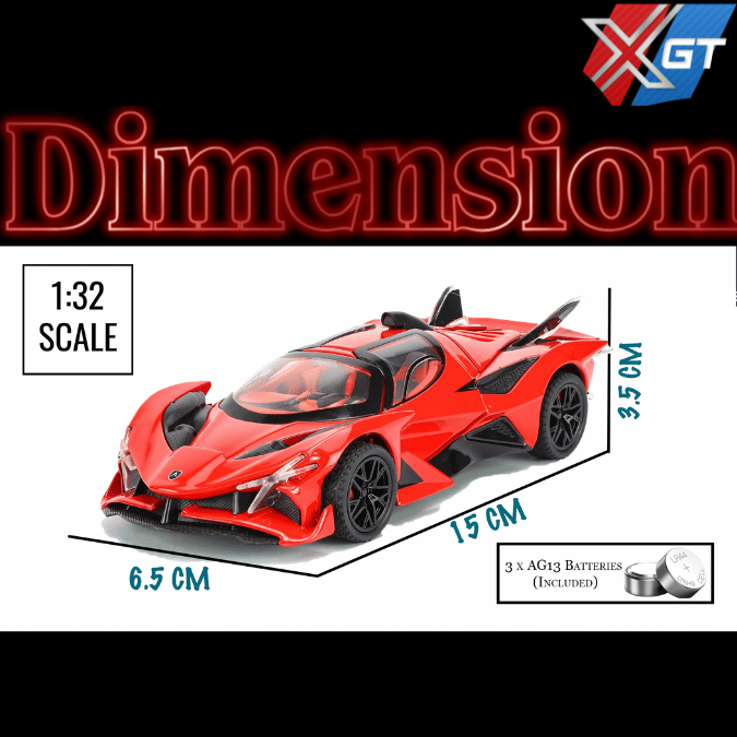 1:24 DC Apollo EVO Sports Die-Cast Model Car This precision-crafted collectible designed for both display and play. Made from durable metal with realistic detailing, it features smooth pull-back action along with light and sound effects, offering a perfect balance of style, durability, and fun for